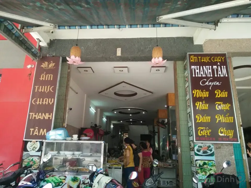 Quán chay Thanh Tâm tọa lạc tại số 41-43 Ngô Mây, Quy Nhơn, một vị trí thuận lợi ở trung tâm thành phố, gần Đại học Quy Nhơn và biển. Điều này giúp cho quán dễ dàng tiếp cận được với đông đảo thực khách, từ sinh viên, người dân địa phương đến khách du lịch.